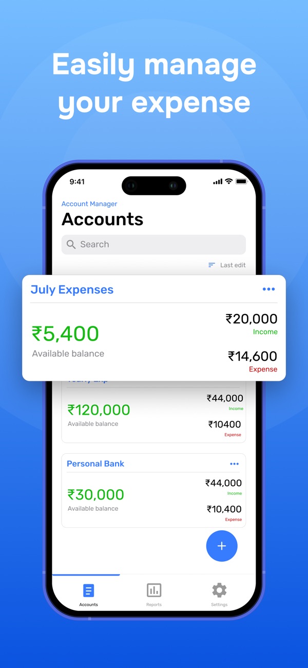 Account & Expense Manager lets you easily manage your day-to-day transactions. Take control of your finances with the Account & Expense Manager app - your all-in-one solution for budgeting, tracking expenses, and achieving your financial goals. Whether you're a savvy saver or a budgeting beginner, our intuitive app makes managing your money a breeze.