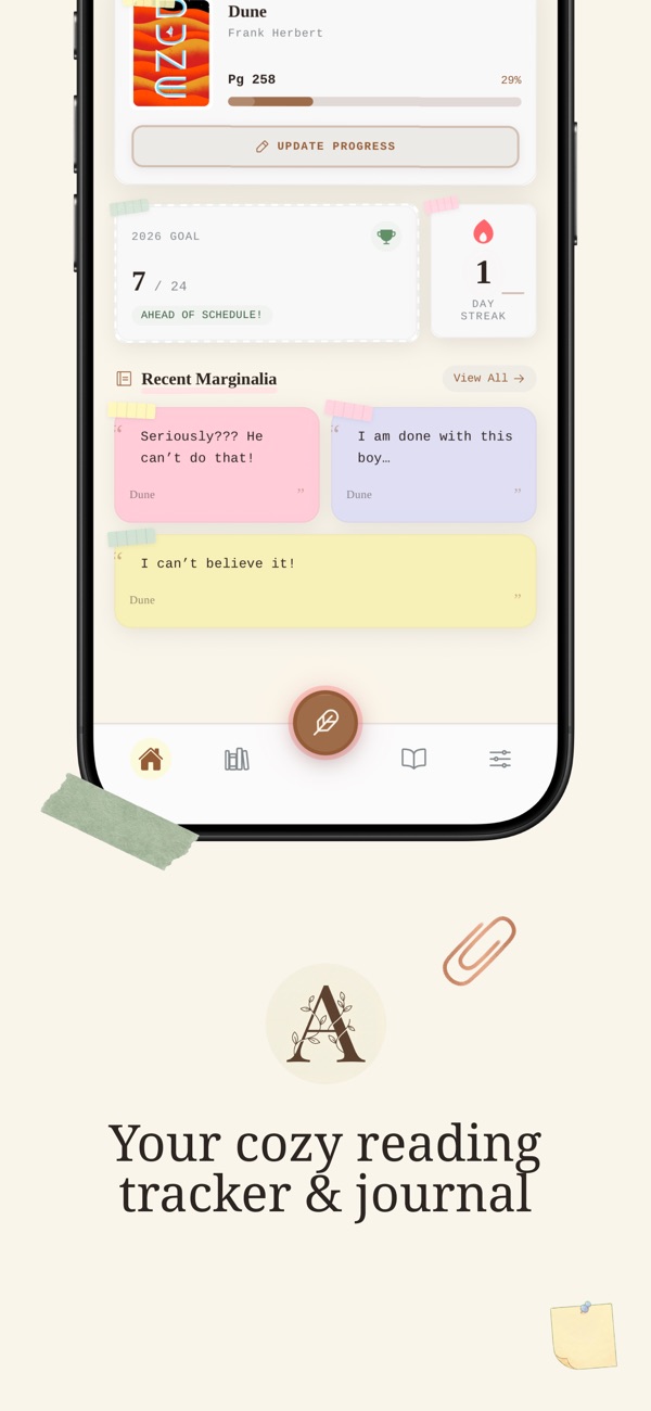 NEW: The book tracker for readers who annotate. Track your TBR, save marginalia & quotes. Join the cozy reading community!