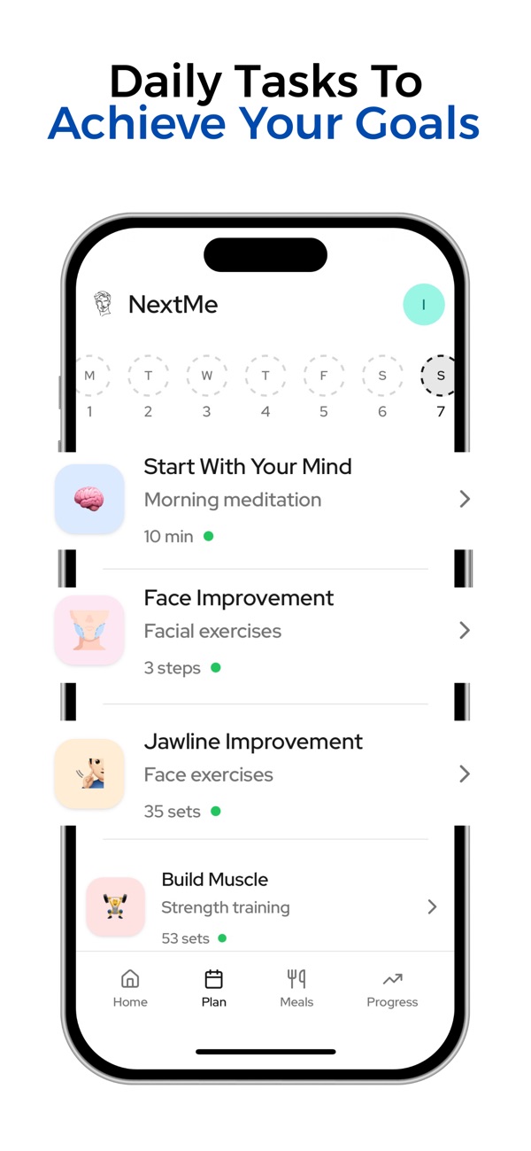 Improve & Transform NextMe is your personal guide to improving your-self physically and mentally (glowing up), feeling better, building healthy habits, and unlocking your full potential every day. With simple, actionable steps, interactive tracking, and motivational reminders, NextMe helps you grow into the best version of yourself—without any medical claims or unrealistic promises. Key Features: • Daily Challenges: Small, actionable steps to boost productivity, confidence, and well-being.