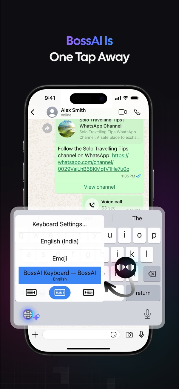 Transform the way you work on iPhone with BossAI, the intelligent keyboard that turns your voice into polished text. Whether you're drafting emails, replying to chats, or capturing ideas on the go, BossAI makes typing faster, easier, and smarter. - VOICE DICTATION THAT THINKS No more raw transcriptions.