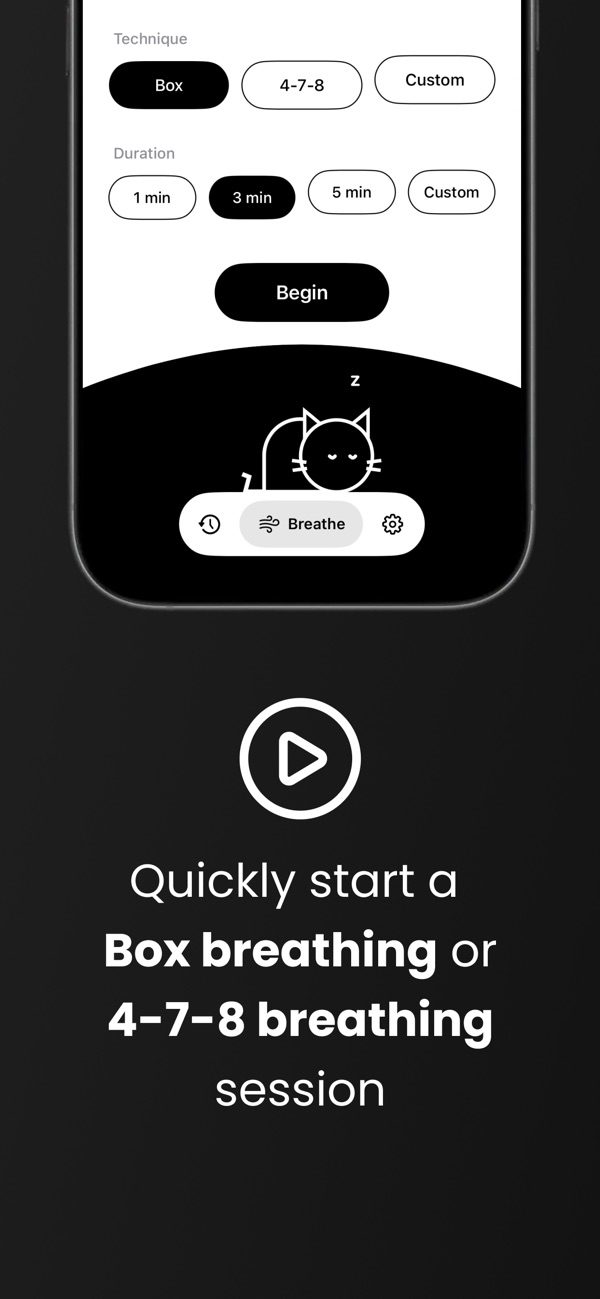 Minimal breathing exercises with adorable cat companion. Master paced & box techniques, build streaks, find calm. Relax and breathe with Breathing Exercises And A Cat – minimalist guided sessions featuring a cute cat companion for daily calm.