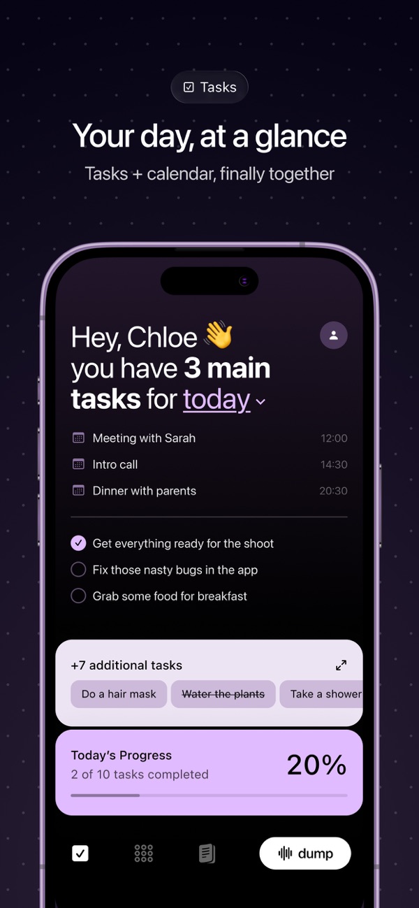 Turn chaotic thoughts into organized tasks in 30 seconds. Built for ADHD minds—voice brain dump, visual habit tracking, and mood journaling in one calm interface. Your ADHD brain has a hundred thoughts racing at once.
