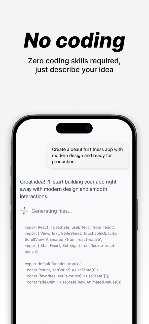 Describe your app idea, AI builds it in seconds. No coding, no experience needed—just your imagination. Try free today!