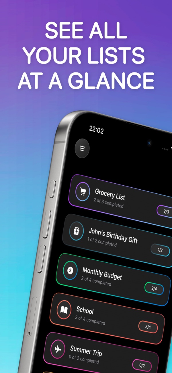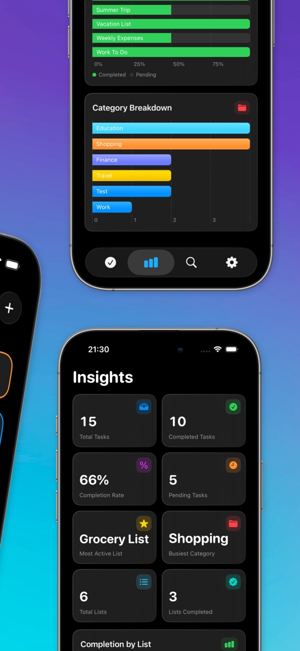 Introducing Task Lab - The beautifully organized way to manage your life. Stay organized in style with Task Lab, the todo list app that brings color and clarity to your daily tasks. Create multiple lists with stunning gradient themes, making it easier than ever to distinguish between work, shopping, personal goals, and more.