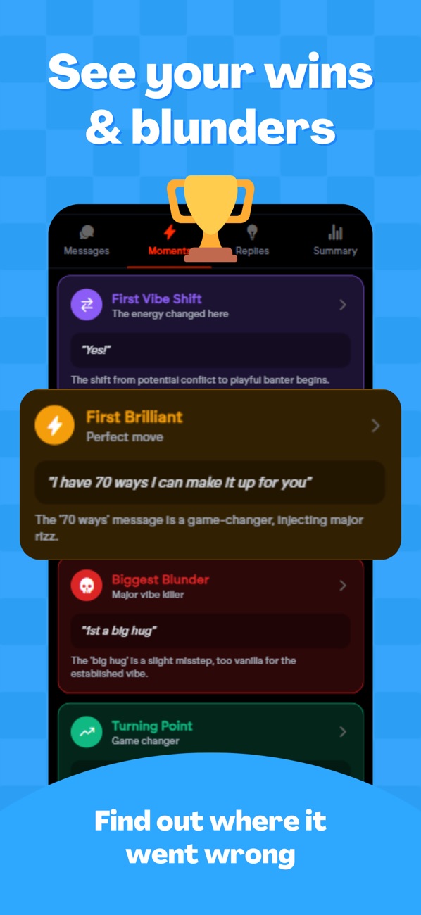 Welcome to Blunder. Blunder - Text Chess Ratings is the ultimate app for analyzing, improving, and mastering your text conversations. Designed for anyone who wants to communicate smarter, Blunder evaluates your messages like chess moves, helping you understand how every word lands in real-life conversations.