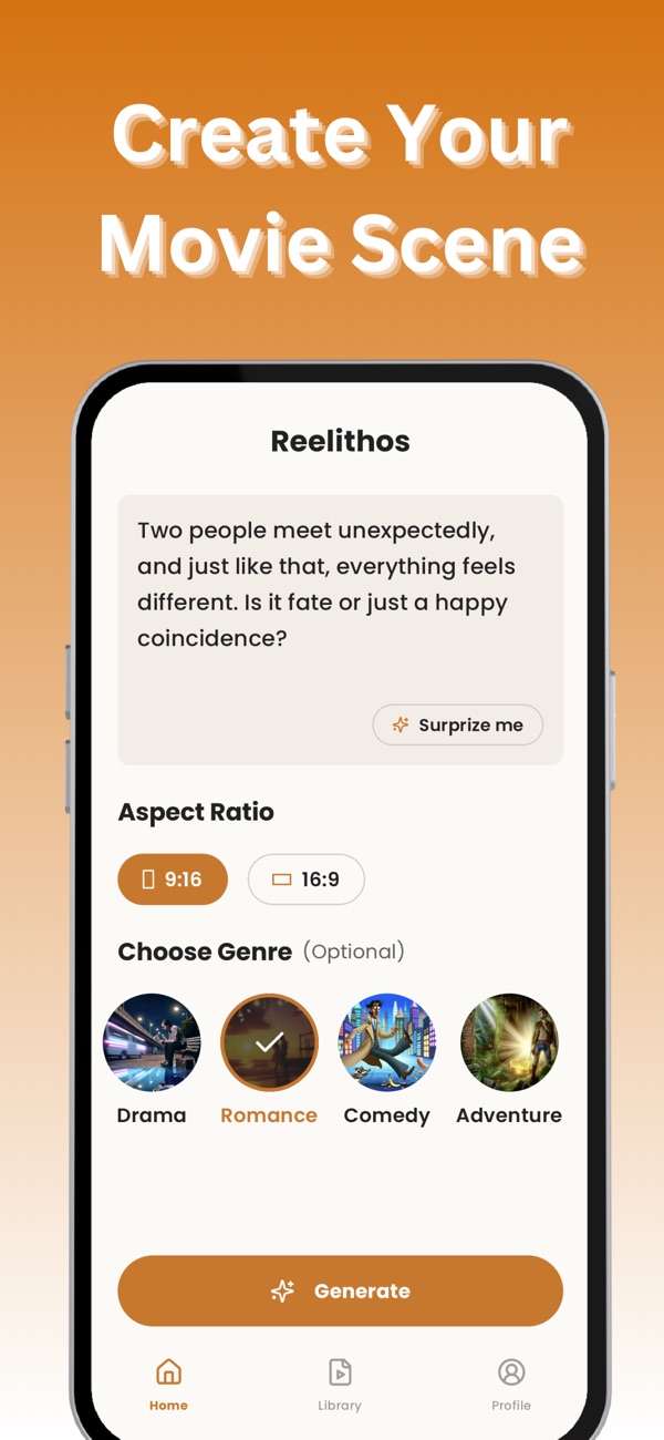 Transform Your Ideas into Cinematic Scenes! Reelithos is the ultimate app for anyone who wants to create short, movie-like clips from simple prompts. Select your favorite genre, provide a brief description, and watch as we bring your ideas to life through stunning cinematic visuals.