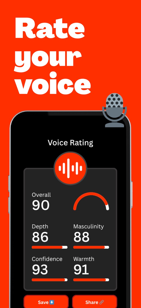 Welcome to Voice Rate. 0 brings basic functionality to the Voice Rate app. Voice Rate is the ultimate voice analysis and improvement app designed to help you discover how attractive, confident, and powerful your voice really sounds — and how to make it better.