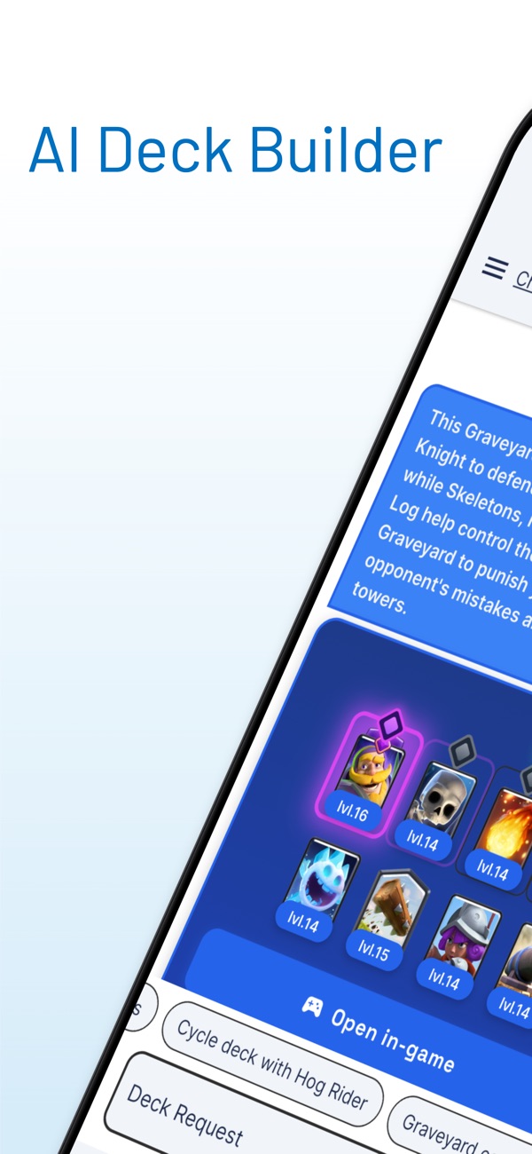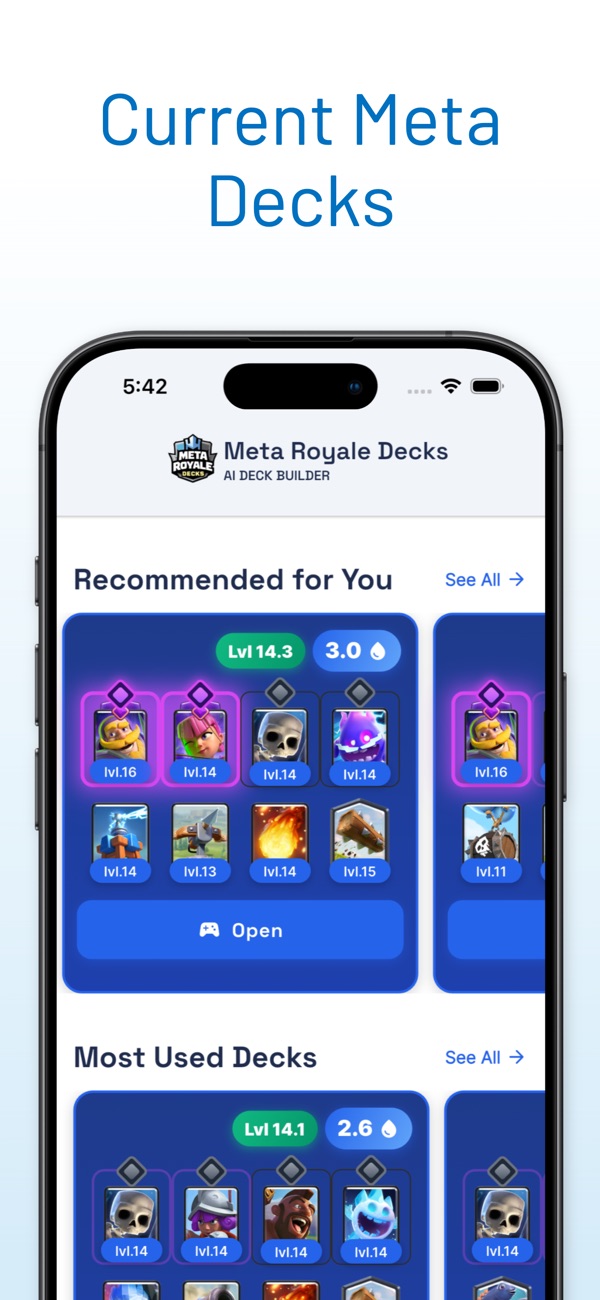 Get custom Clash Royale decks based on the current meta and your card levels. Clash Royale Deck Builder — AI-Powered Recommendations Unlock winning Clash Royale decks with AI-driven suggestions tailored to your playstyle, arena, and card levels. Stop scrolling and start climbing with decks you can actually build and play today.