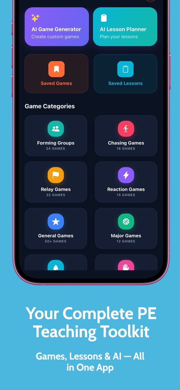 Plan better PE lessons in minutes, not hours. PE Games gives you everything you need to deliver engaging, curriculum-aligned physical education — all in one app. AI Game Generator Describe what you need and let AI create custom games tailored to your class.