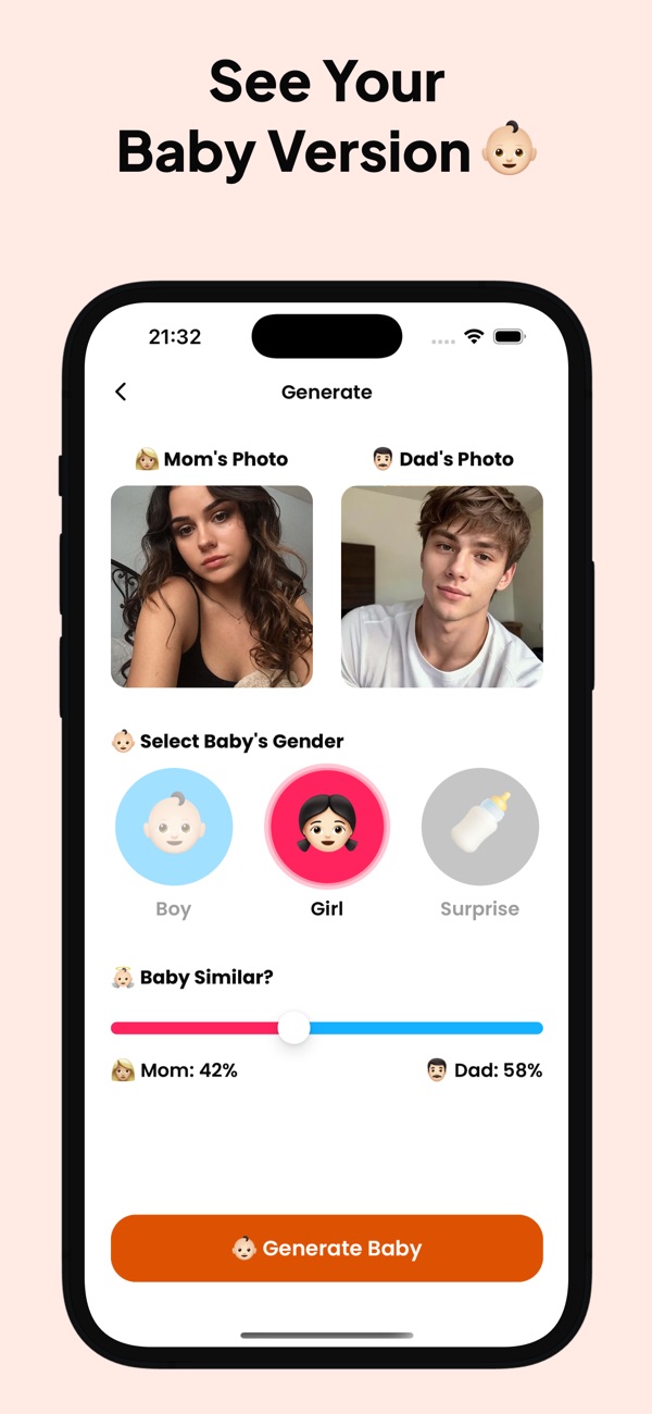 BabyLens is the ultimate AI baby generator that allows you to see what your future baby might look like. Using advanced facial recognition, machine learning, and deep learning technologies, BabyLens analyzes the facial features of two uploaded photos and creates a realistic, high-quality baby face prediction. Whether you’re a couple dreaming about a child, friends curious about possibilities, or simply want to have fun with AI baby predictions, BabyLens is the perfect app for generating future baby photos.