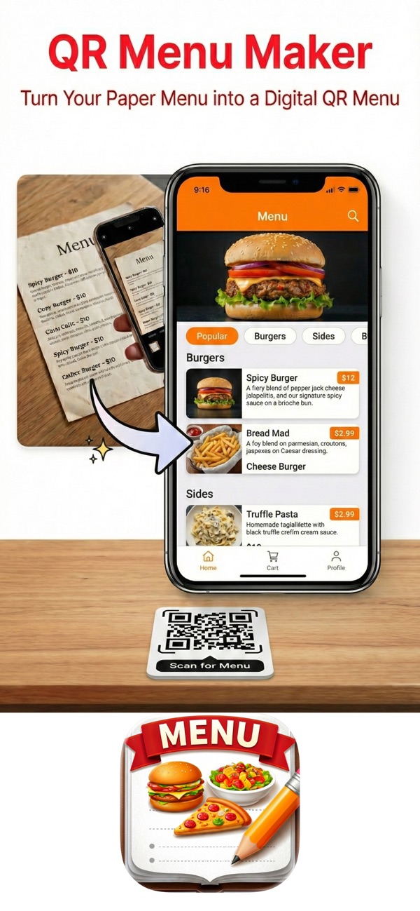 New Color Schemes & Unlimited menu food image and description generations! QR Menu Maker is the ultimate menu maker and designer for restaurant, cafe, bars and food truck owners. Why settle for a static, boring PDF or paper list when you can have a beautiful, contactless online menu that your customers will love?