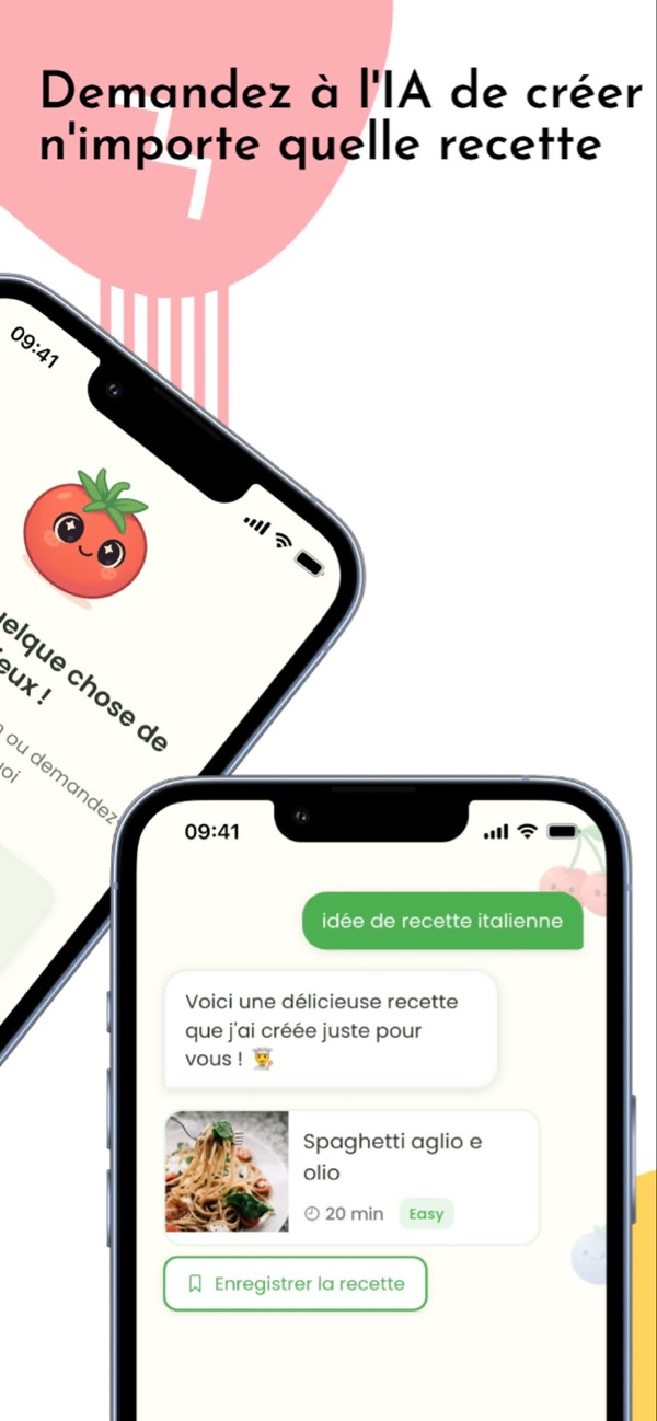 VOTRE COMPAGNON CULINAIRE IA PERSONNEL Découvrez Reciply, l'app qui révolutionne votre façon de cuisiner ! Importez vos recettes TikTok préférées en un clic et laissez notre Chef IA créer des plats personnalisés adaptés à vos goûts et restrictions alimentaires. FONCTIONNALITÉS PRINCIPALES IMPORT DEPUIS TIKTOK • Transformez n'importe quelle vidéo de recette TikTok en recette complète • Partagez directement depuis TikTok vers Reciply • Ingrédients, instructions et temps de préparation extraits automatiquement CHEF IA INTELLIGENT • Générez des recettes personnalisées selon vos envies • Recettes adaptées à votre niveau de compétence • Respecte vos préférences et restrictions alimentaires • Images haute qualité générées pour chaque recette PERSONNALISATION AVANCÉE • Filtres par temps de préparation (rapide, moyen, long) • Tri par difficulté (facile, moyen, difficile) • Préférences alimentaires : végétarien, végan, sans gluten, halal, casher, et plus • Type de repas : petit-déjeuner, déjeuner, dîner, collation ORGANISATION PARFAITE • Enregistrez vos recettes favorites • Collections illimitées avec Premium • Recherche rapide dans votre bibliothèque • Synchronisation automatique RECIPLY PREMIUM • Recettes IA illimitées • Import TikTok sans limite • Favoris illimités • Expérience sans publicité • Filtres avancés • Essai gratuit de 7 jours POUR TOUS LES NIVEAUX Que vous soyez débutant ou chef confirmé, Reciply s'adapte à votre niveau de compétence.