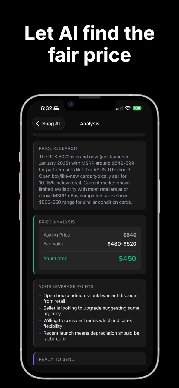 Never overpay again. AI-powered deal analysis for Marketplace, All Online Listing, and more. Get instant price research and negotiation strategies.