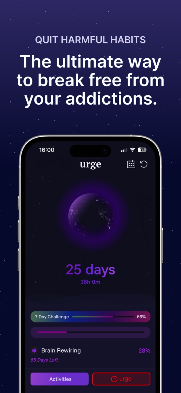 Transform your life with Urge! A spiritual companion for Muslims to break bad habits and strengthen your faith in Islam. Urge helps Muslims overcome bad habits with these powerful features: - Urge Button: Tap for immediate support when temptations are high.
