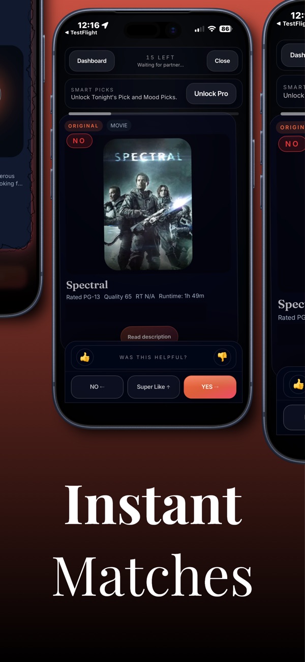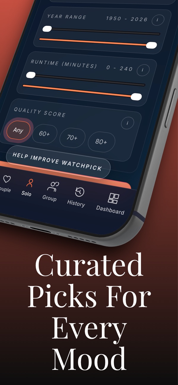 Stop scrolling for 20 minutes. Swipe together, match instantly, and start watching faster with WatchPick. Stop scrolling.
