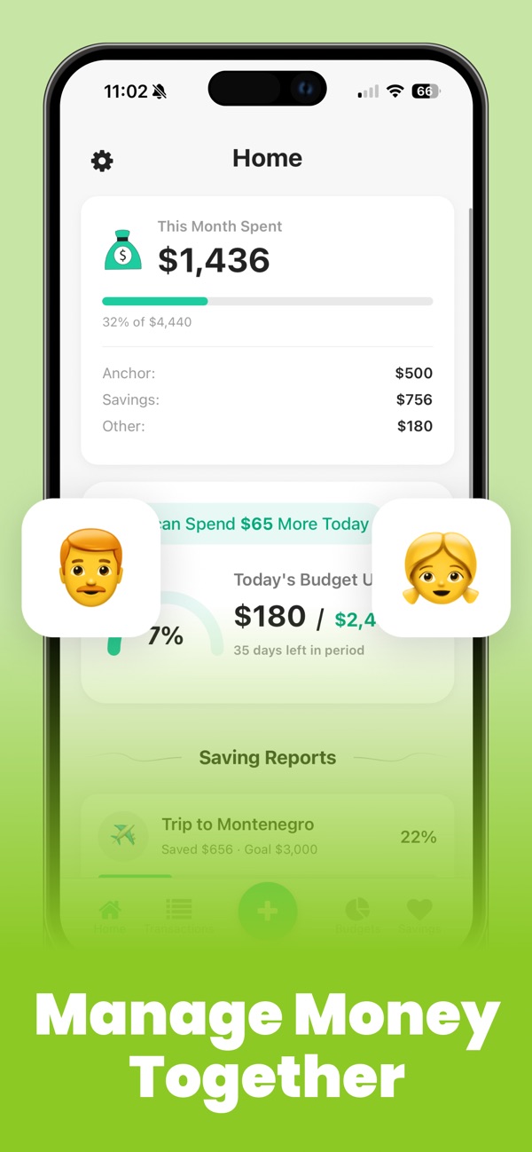 Stay organized with a shared budget app that helps couples track spending, manage expenses, and control monthly budgets together. WeBudget is the simple and effective way for couples and households to manage shared money together. Track expenses, plan monthly budgets, build savings and stay perfectly aligned with the people you share your life with.